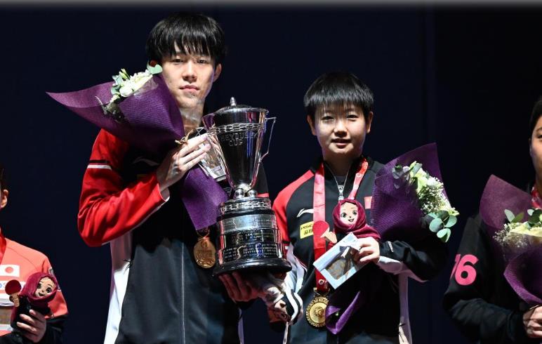 当天的混双决赛中,王楚钦/孙颖莎以3:1战胜日本组合吉村真晴/大藤沙月。孙颖莎赛后说:“即使对手是双右手组合,也展现出了极强的默契和战术威胁。我们彼此信任,在比分胶着时都很坚定,这也是我们能够(取得)三连冠的关键。”