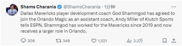 根据NBA记者Shamsl报道,山姆高德将离开独行侠,前往魔术队出任助理教练。 该记者写道:“据 Klutch Sports的安迪-米勒向ESPN透露,达拉斯独行侠队球员发展教练山姆高德已同意加盟奥兰多魔术队担任助理教练。山姆高德自2019年起为独行侠队工作,如今在奥兰多将承担更重要的角色。” 山姆高德,正是知名街球动作“晃过上帝”的创始人,球员时代还曾效力过CBA联赛的浙江万马队。而在结束球员生涯后,山姆高德也曾当过训练师,指导过多位NBA球员的运球。他还曾与现任魔术队主教练贾马尔-莫斯利共事过,而根据此前的报道,魔术队在完成贝恩的交易后,就一直想要招募山姆高德进入球队教练组。